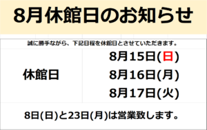 8月休館日のお知らせ