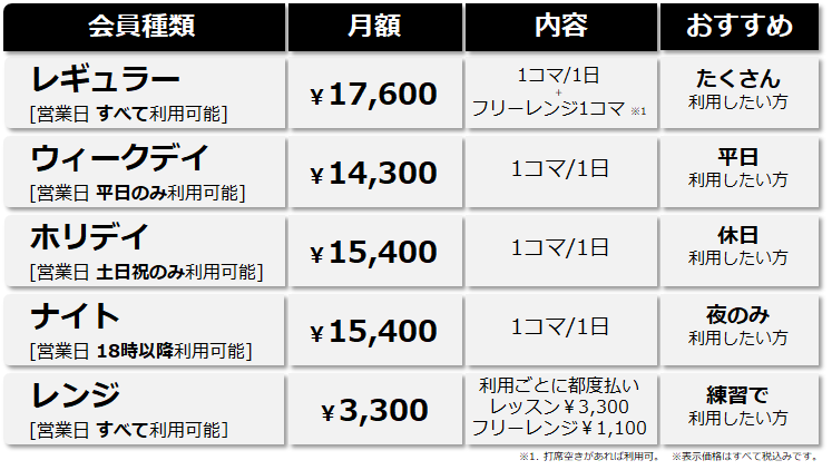 入会時の際、入会金(事務手数料込)¥11,000(税込)に加え以下の費用をお支払いいただきます。